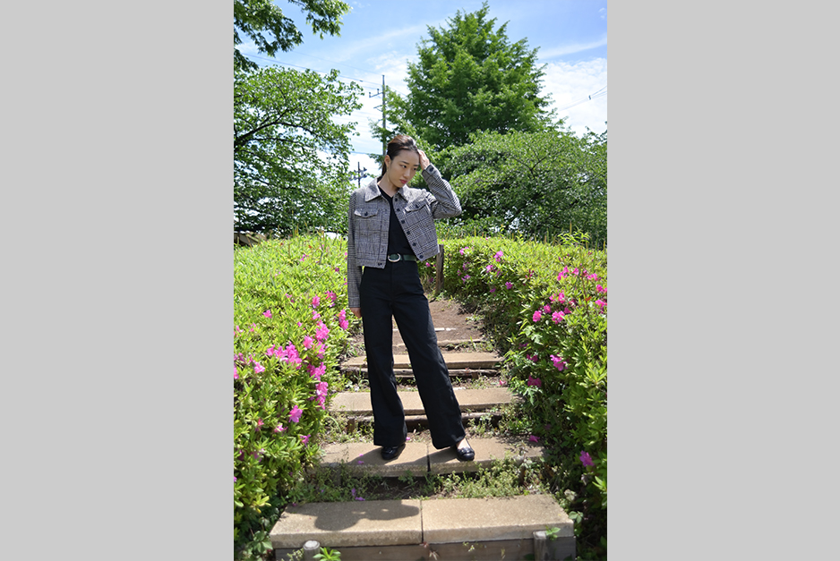 作例1は広角端の20mmで絞りはF3.5開放で撮影しています。今回は解像感が分かりやすいような洋服、背景を選びました。緑や木々の様子、顔や髪の毛、上着の模様などを見ると、十分なシャープネスは持っていることが分かります。像高の中間部分、周辺も破綻はない様子が読み取れます。全体としてはピント面の色滲みが少なく好感が持てます。