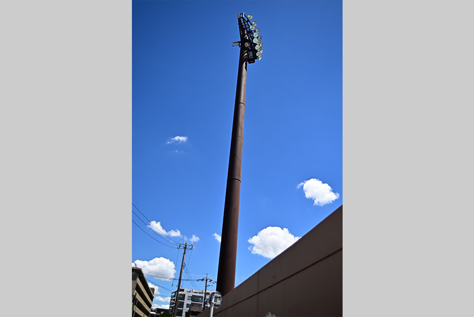 作例4は20mm広角端、開放絞りF3.5で撮影した写真です。ピント面はライトにあります。等倍拡大すると非常にシャープに結像していることが分かります。その反面、手前の建物や標識は若干ピンボケとなっています。色滲みも目立たず抜けも良いので、十分使用に耐えることがわかります。