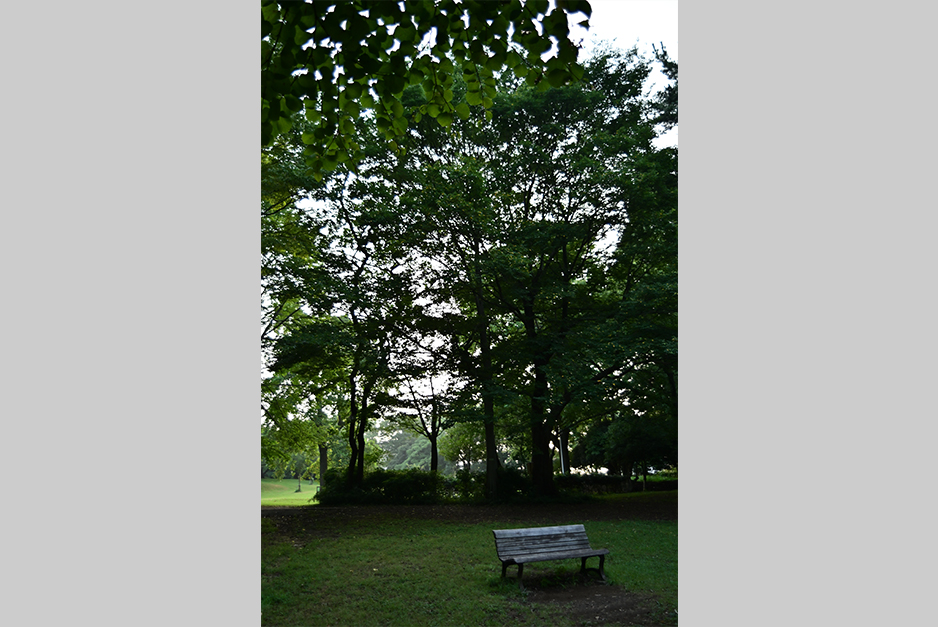 作例6は中間焦点距離28mm近傍、開放絞りF4相当で撮影した写真です。ピントは樹木とベンチの間のあたりにあると思います。木漏れ日にフレアーが写っていますが、コントラストも良く抜けも良く十分使用に耐えることがわかります。