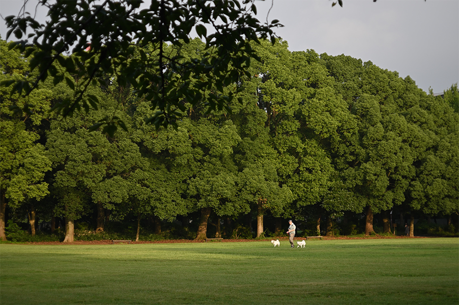 作例8は60mm望遠端、開放絞りF5.6で撮影した写真です。ピントは樹のあたりにあると思います。ここでも良く観察すると、非常にシャープなことが分かります。犬の散歩をしている方の表情が読み取れます。コントラストも良く抜けも良い上に解像力も十分あることがわかります。