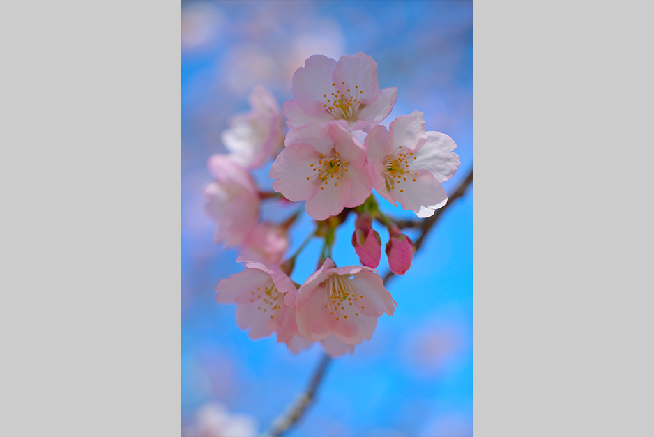 作例1は撮影倍率-1/2倍近傍で撮影したものです。もちろん絞りは開放絞りのF3.5です。ピント位置のシャープネスは文句ありませんし、後方に写り込んでいる微ボケの花のつぼみや花びらの描写がまた秀逸です。ピントの合っているところからの三次元的な描写の変化が実に自然。大ヒットの真っ最中に、このレンズをニッコールレンズの代表と称して「硬いレンズ」とか「ボケ味の最も汚いレンズ」と酷評された方がおられたとうかがっています。しかしこれらの作例からは、その面影は微塵も感じられません。皆さんもぜひご自分の目で再評価してみてください。