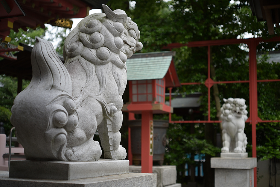 作例6は撮影距離1~3mの作例です。もちろん絞りは開放絞りのF3.5です。手前の狛犬がピント位置です。ピント面のシャープネスは言うまでもないですが、奥の狛犬を見ればこのレンズのボケ味の良さ、三次元的描写特性の良さが確認できます。